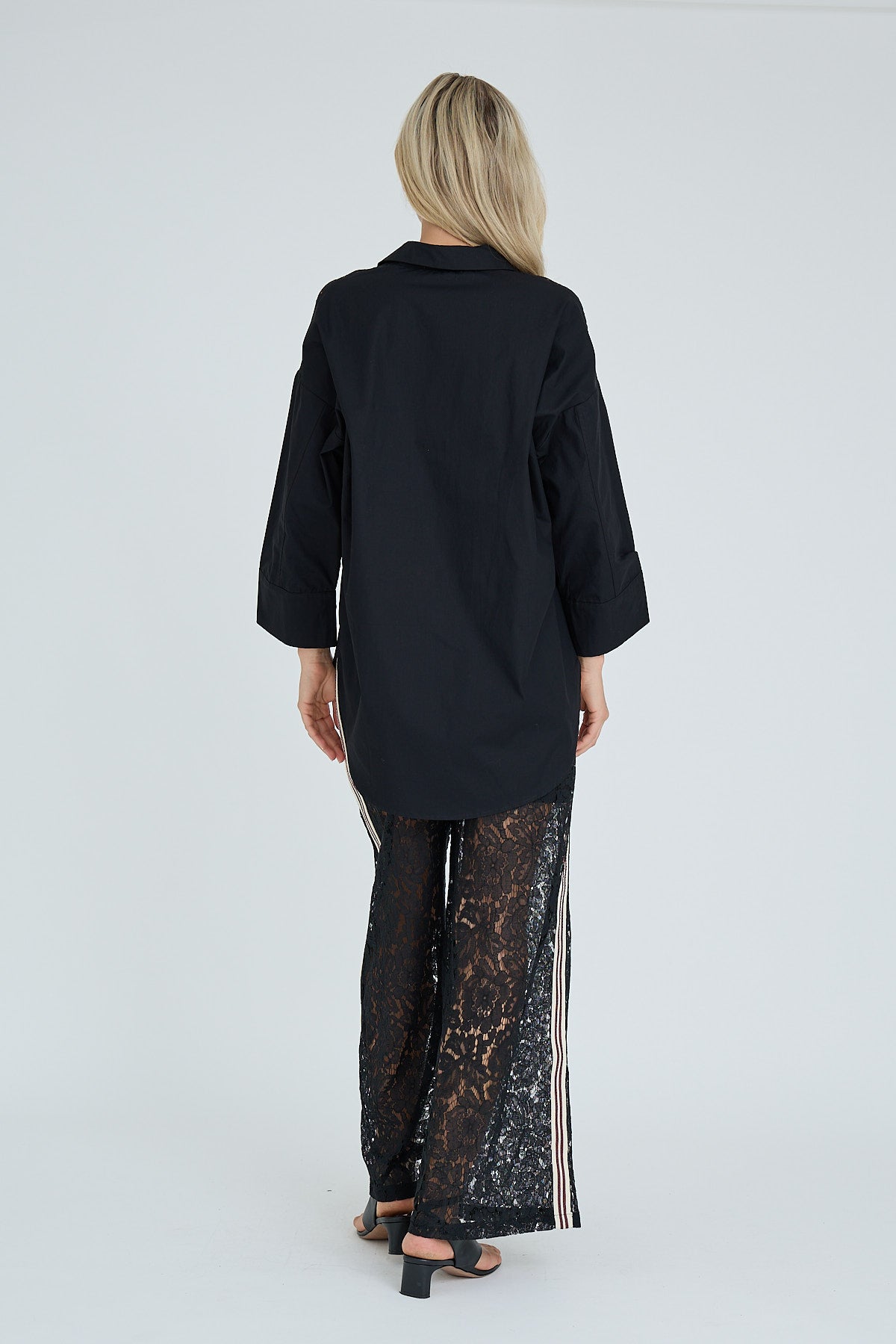 Clara-paita on naisellinen paita, jossa on elegantit pitsiyksityiskohdat edessä. Paidassa on nappikiinnitys kokonaan alas, klassinen kaulus ja leveät, kolmeneljäsosapituiset hihat, jotka antavat rennon mutta tyylikkään ilmeen.