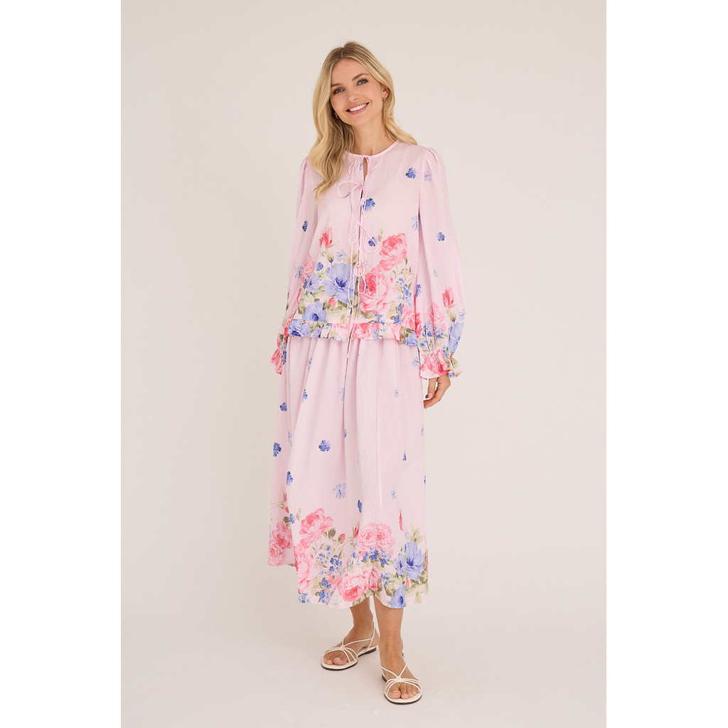 Fleur-kjolen är en lång kjol i ett lätt material med ett vackert blommönster. Kjolen har en elastisk midja som gör den bekväm att bära.