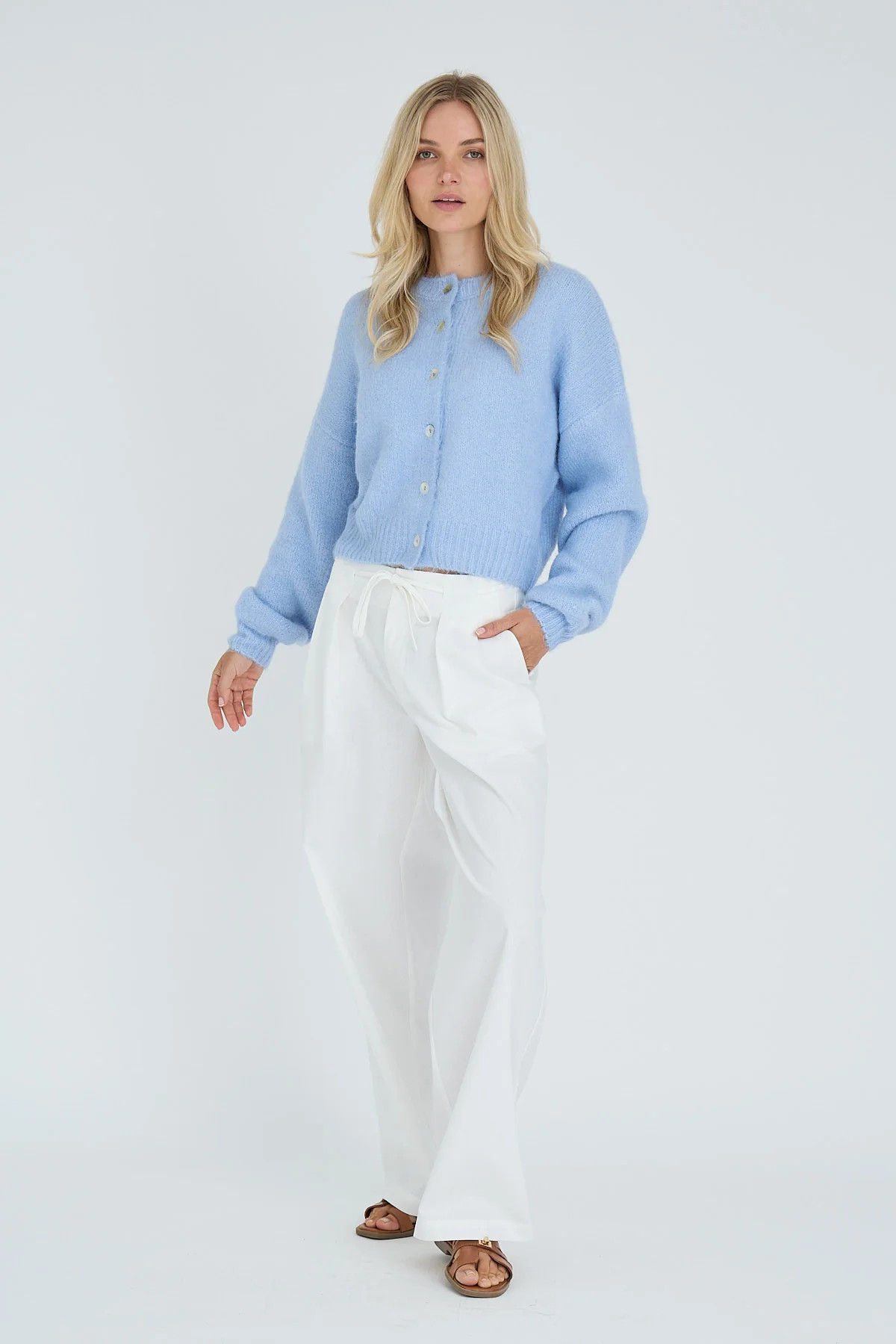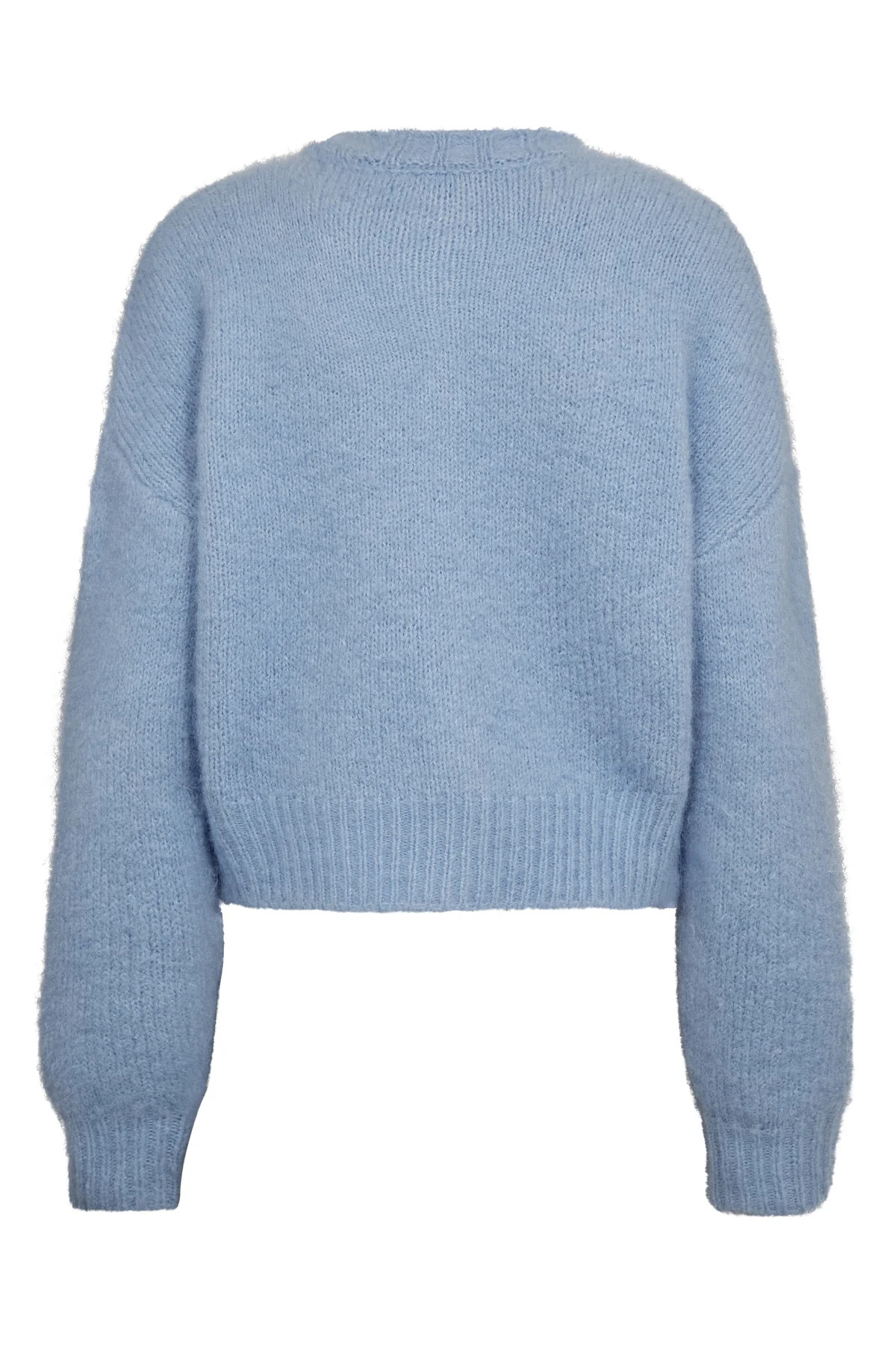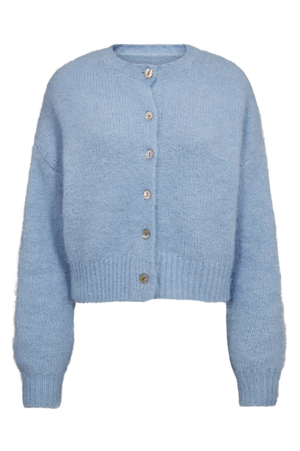 Mjuk stickad kofta med normal passform. Koftan stängs framtill med knappar.