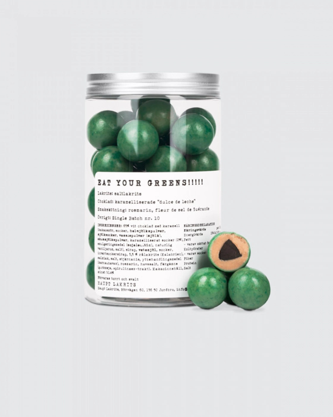 Djup och fyllig saltlakrits omsluten av mjuk dulce de leche-choklad, toppad med karamelliserad rosmarin och fleur de sel de Guérande.