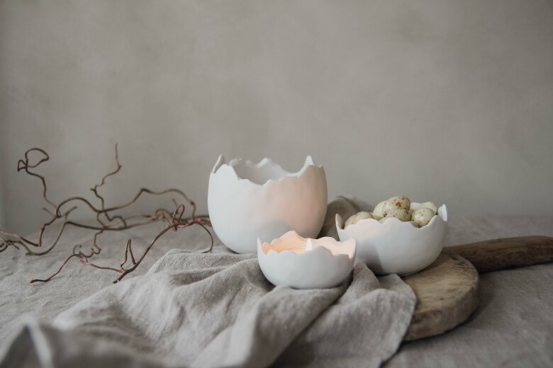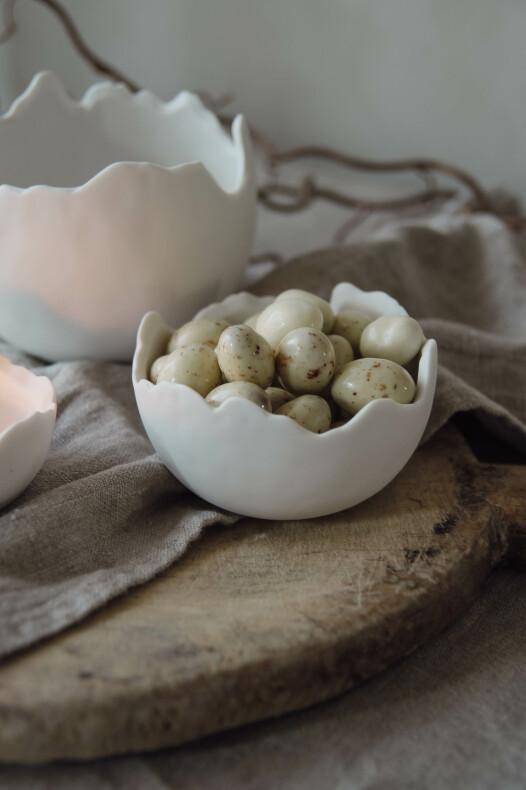 En vacker skål i formen av ett äggskal. Passar perfekt till påsk.