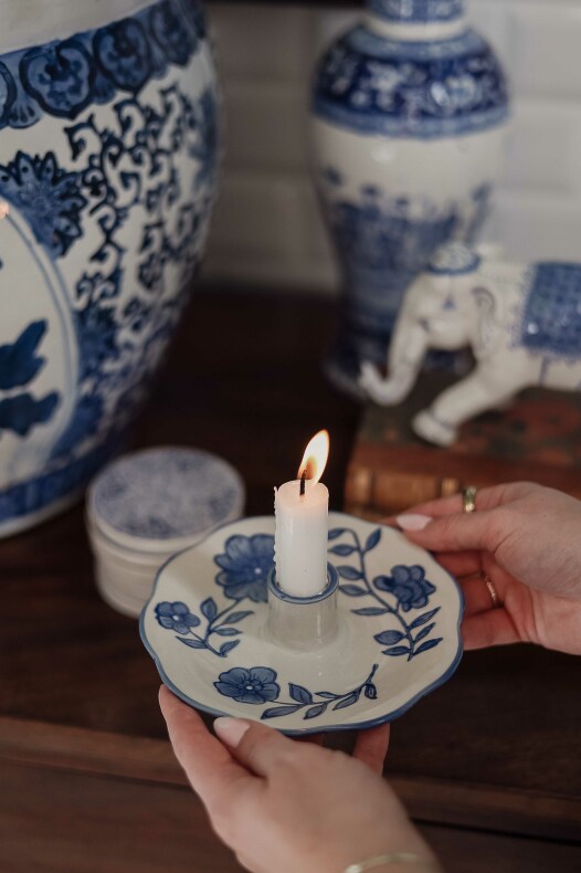 Ljuvlig ljusstake med handmålat mönster i glada härliga färger