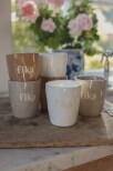 Ljuvliga muggar med silkscreen text i keramiken