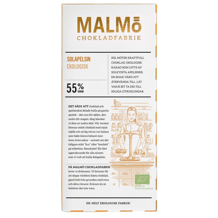Sanotaan, että suklaa ja appelsiininkuori jakoivat ennen aikaan apteekin hyllyn – toinen sielulle, toinen vatsalle. Nykyään yhdistämme ne aivan eri syistä. Meidän versionamme tumma suklaa kohtaa pehmeän maidon ja raikkaan sitruksen tasapainossa, joka tuntuu yhtä aikaa tutulta ja yllättävältä – oli etiketissä ennen lukenut "lääke" tai "makeinen".
