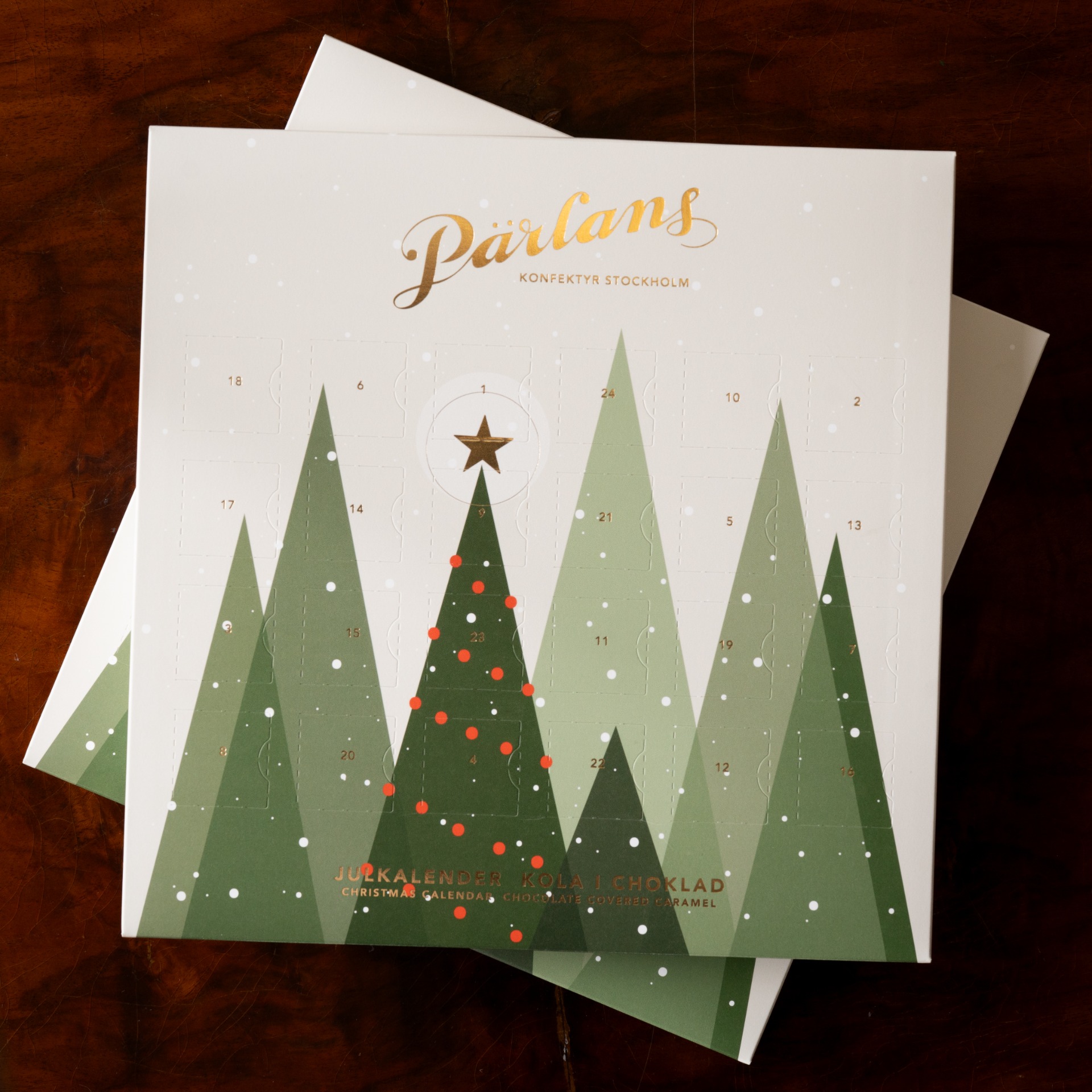 Vuoden joulukalenteri on täynnä 24 erilaista toffeekaramellia, jotka on dipattu tummaan tai vaaleaan luomusuklaaseen Malmö Chokladfabrikenilta. Jokaisella on oma, ainutlaatuinen makunsa – luukuista löydät hedelmäisiä, suolaisia, makeita, mausteisia, klassisia, erikoisia, aikuismaisia ja lapsenmielisiä suklaakuorrutettuja karamelleja. Jokainen joulua edeltävä päivä tarjoaa uuden, vastustamattoman herkullisen pienen yllätyksen.