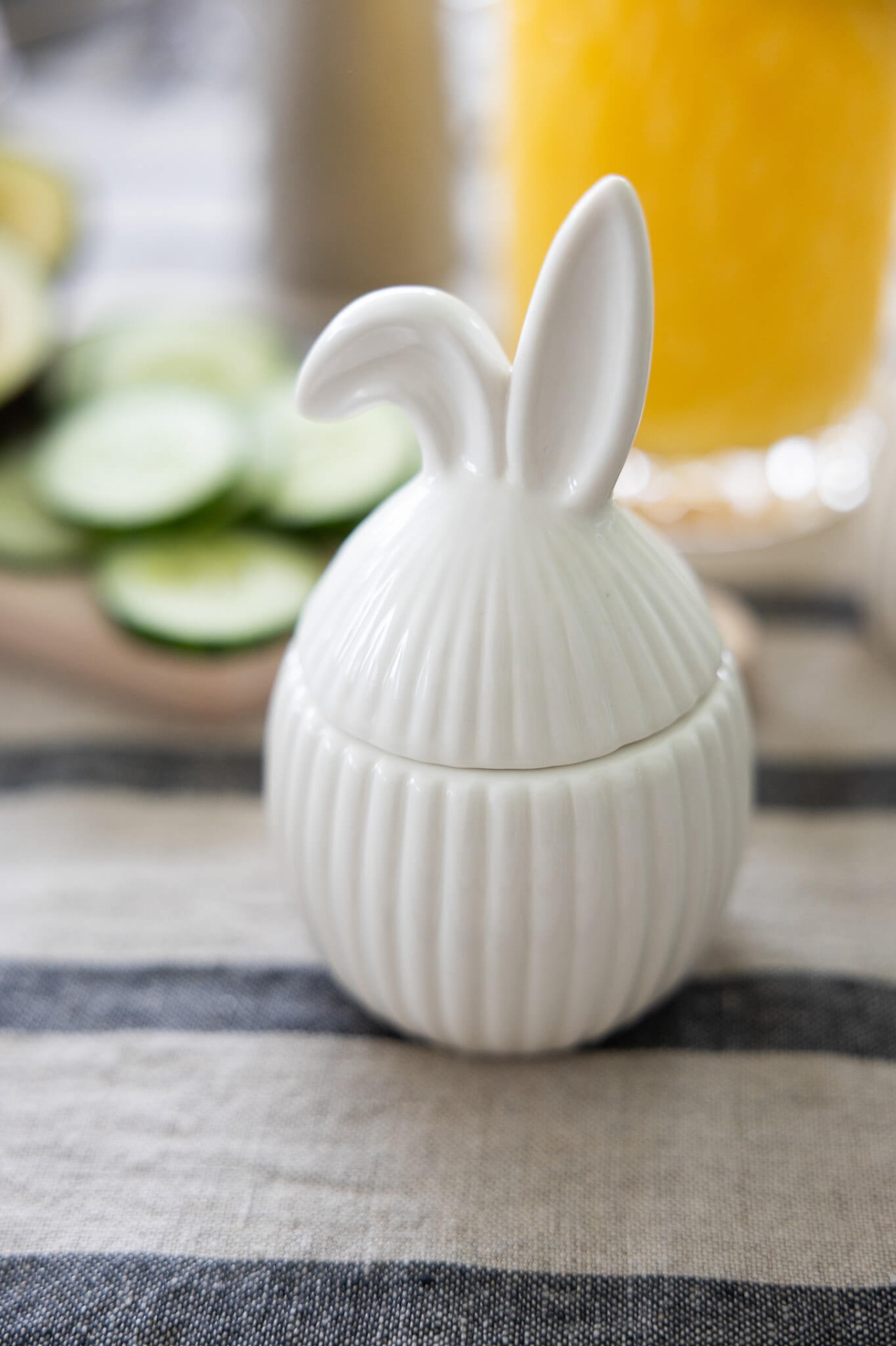 Koristeellinen purkki lasitetusta keramiikasta. Suloinen pieni yksityiskohta pääsiäiskarkeille, joka saa mielellään olla esillä keittiössä, pöydällä tai lastenhuoneessa.