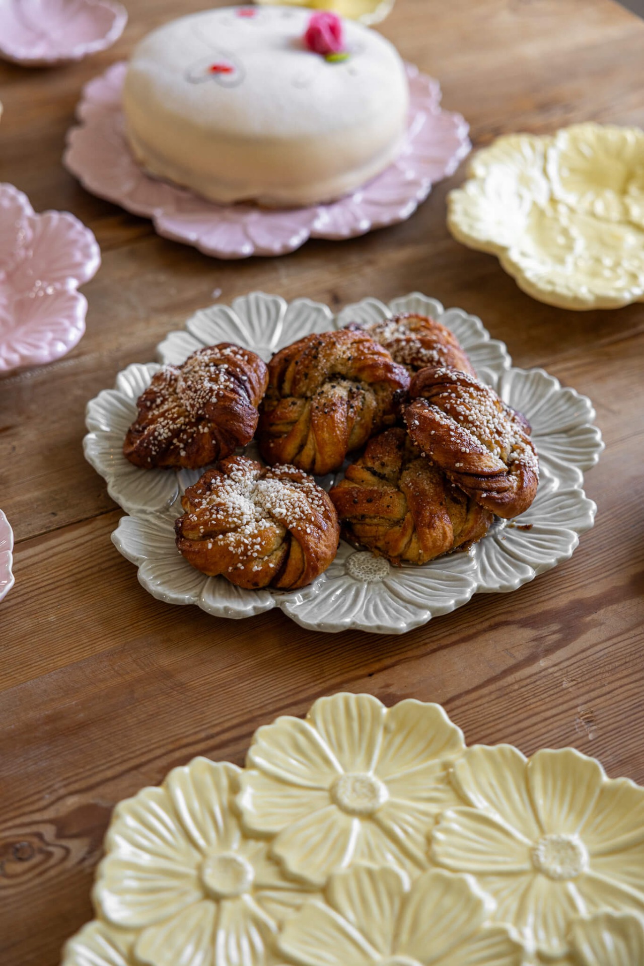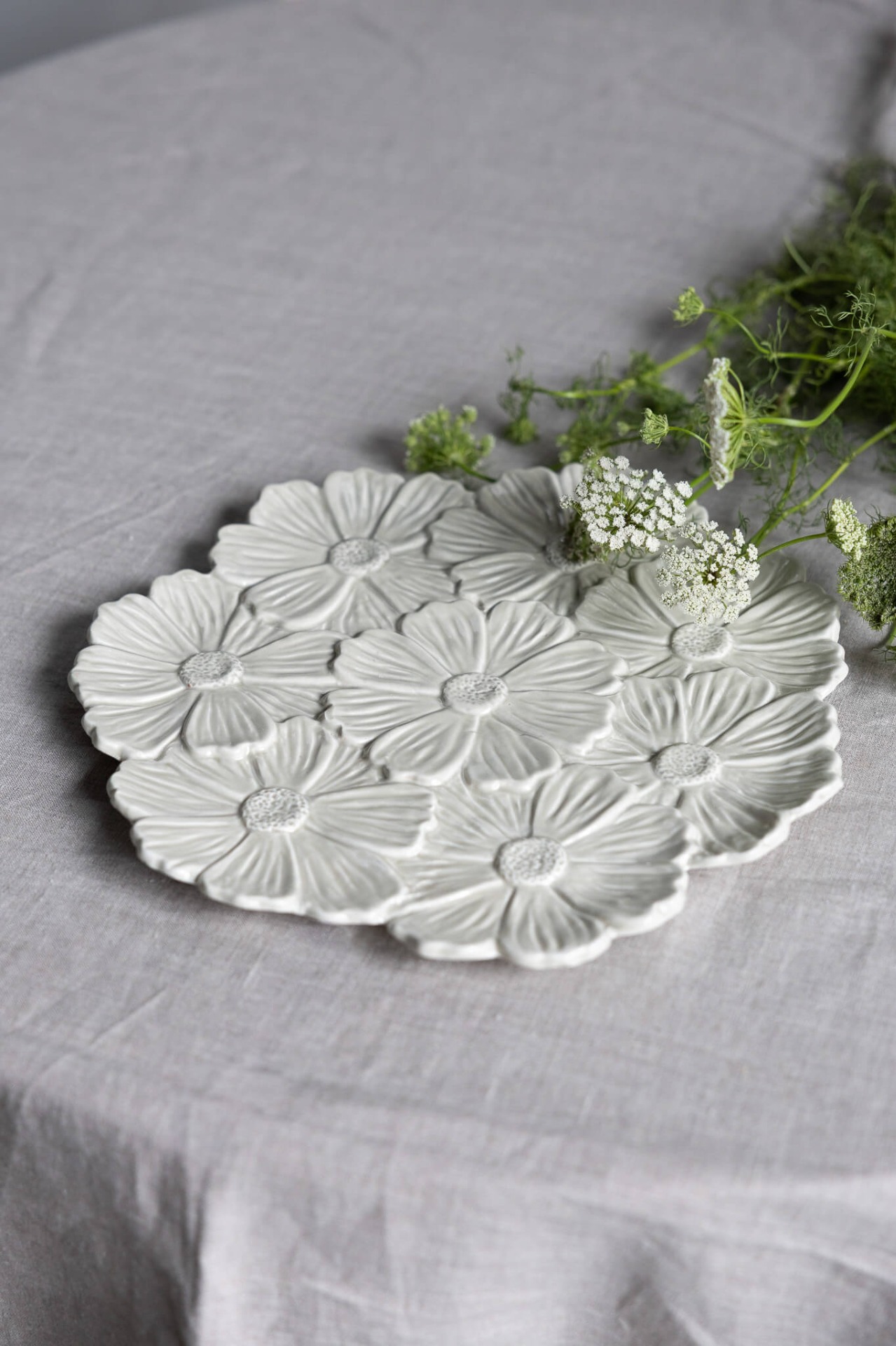 Keramiskt fat i form av blommor. Detta vackra fat är både dekorativt och praktiskt, och passar perfekt för frukt, kakor eller bara som ett iögonfallande dekorationsföremål.